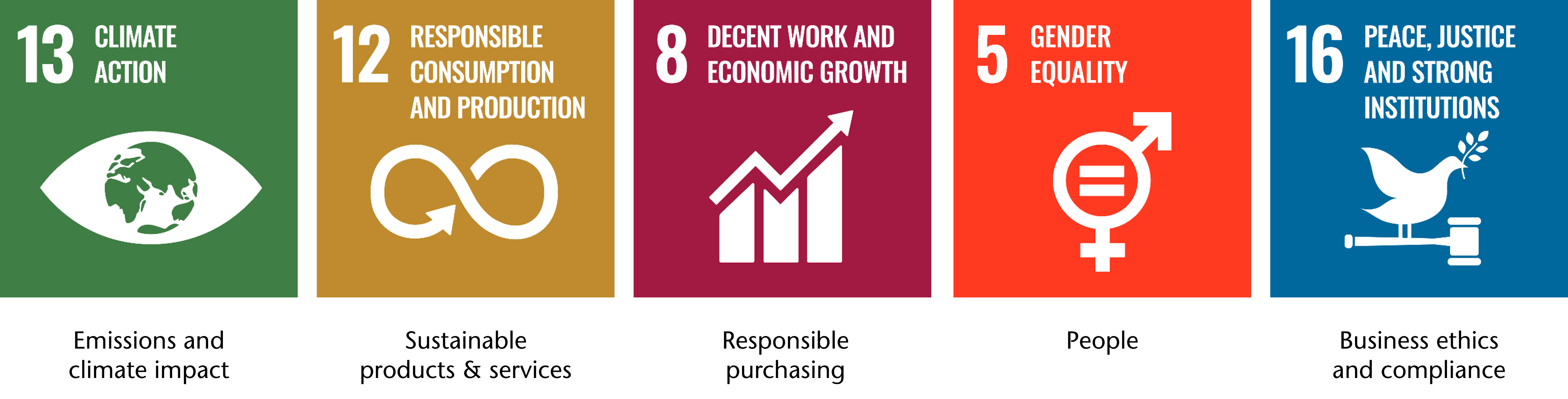 Five UN Sustainable Development Goals have been identified as most relevant to the business, and OptiGroup will continue to create activities and measures that contribute to the achievement of these goals.